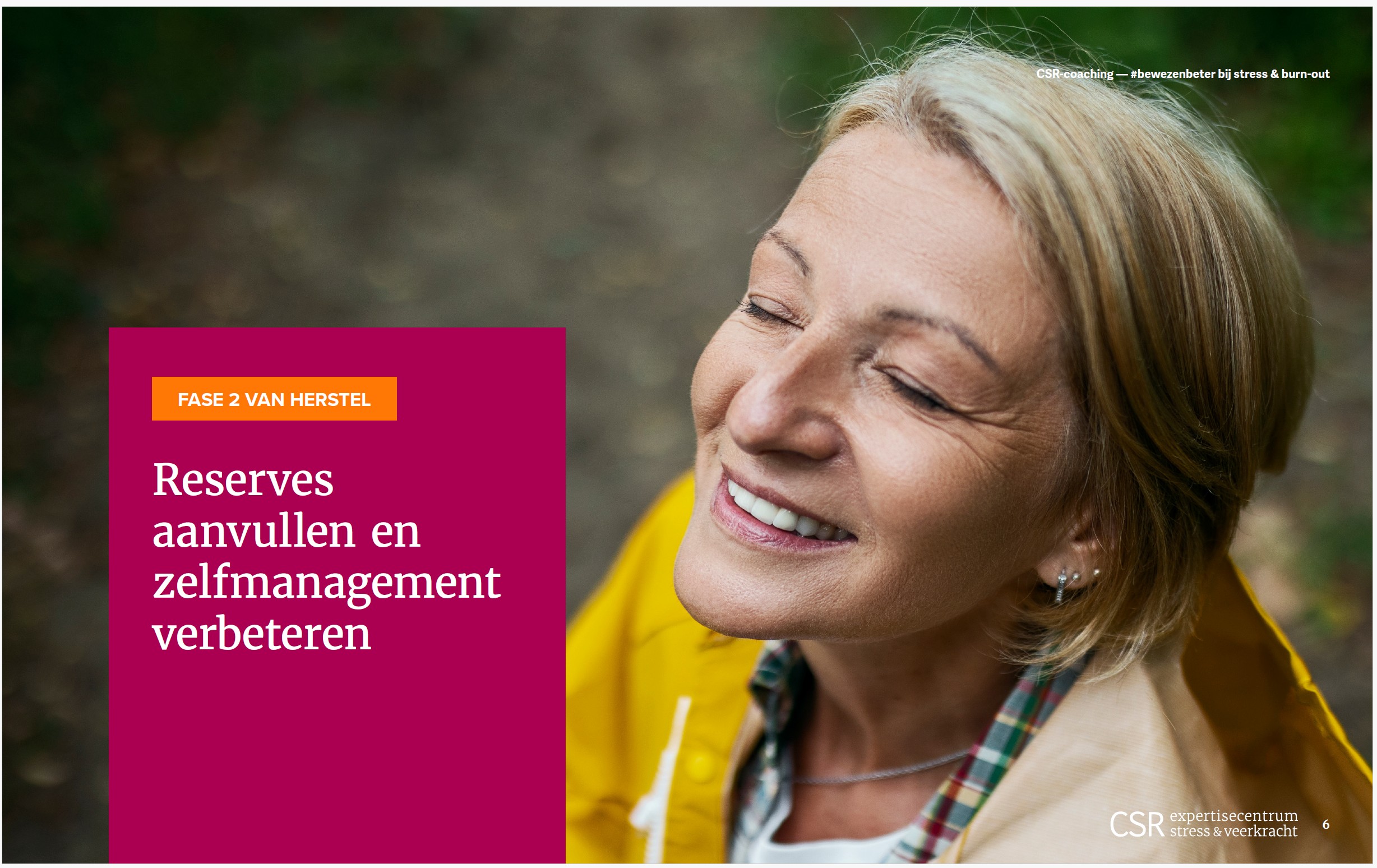 - Vitaliteitsreserves opbouwen en het zelfmanagement verbeteren, gecontroleerd starten met taken oppakken